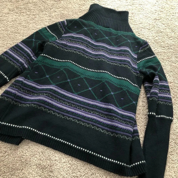 Black with purple and green stripes wool blend cardigan size Large