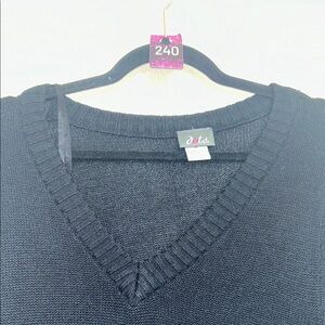 40 Dots Black V-Neck Knit Sweater Tunic size M