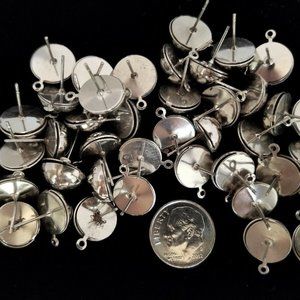 40 EAR DROPS Silver color Round Stud LOT Earring Jewelry Making DIY New