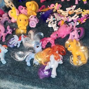 In okay condition, their hair is kinda dicked up. They need a deep conditioning, their hair just feels nappy. One has some pen on its feet & face. 3 are jointed. 12 are Itty bitty. One is a mermaid seahorse with wings. 5 have huge heads & tiny bodies. 2 are from 2005. Ones dressed like a pirate, the other im not sure what she's supposed to be. The 3rd one (these are the jointed ones) is nekkid! My God, buy these & clothe her! She's shameless!