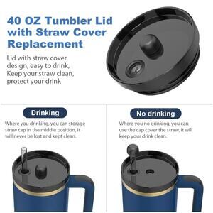 【Two in One】Patent ( Lid and straw cover) - Designed for Stanley 40 oz Quencher Tumblers, the replacement flip lid ensures a snug fit with your 40 oz Stanley cup with Handle.