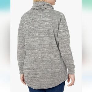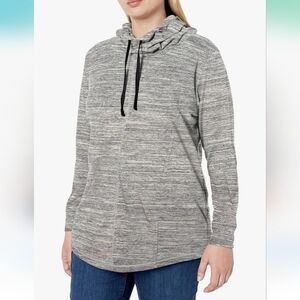 Just My Size French Terry Cowl Neck Plus Size Tunic Sweatshirt. Color is Ebony Space Dye grey.