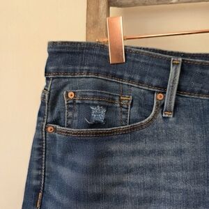 theae have some distressing and are stretchy denim.