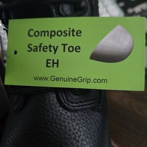 Genuine Grip Men's S Fellas Black Poseidon Composite Toe WP Work Boots - 6050 are a slip-resistant and oil-resistant outsole ankle boot. They are constructed of full grain leather and contain no metal. You will stay comfortable all long with the walking on air polyurethane insole with antimicrobial treatment. This boot is EH rated and ASTM F2413-11 rated.