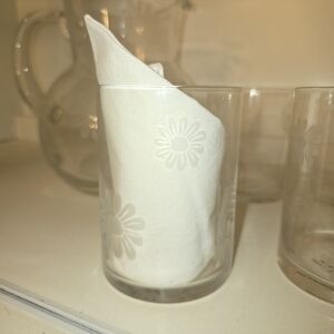 ⭐️40% Off⭐️ Vintage White Barn Etched Daisy Clear Glass Pitcher & Glasses Set
