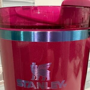40 Oz berry pink Stanley tumbler with a comfortable handle. Sleek and durable design.