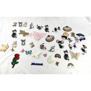 40 PC Assorted Sewing Applique Patches Iron on Sew On NEW Mixed Sequin Crafting