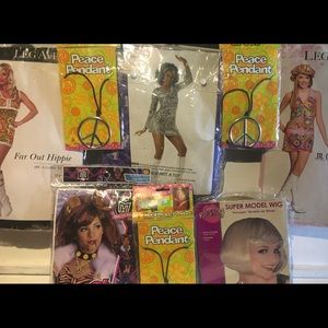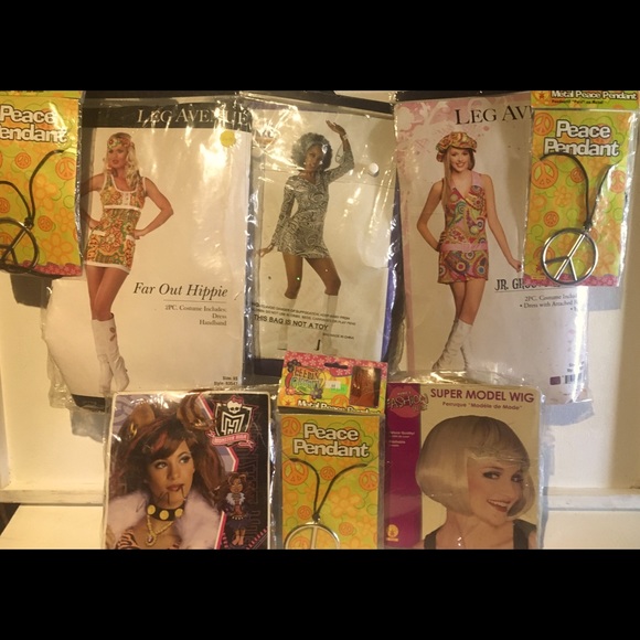 2 wigs: blonde short hair and brunette you could use as pony tales