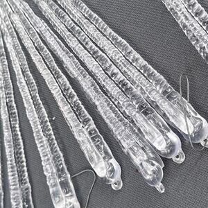 • Features/Accents: Set of 40 clear molded plastic icicle ornaments, unique 3-prong (triple icicle strand) design, realistic frozen drip texture, lightweight with metal hanging hooks, perfect for tree, garland, or window décor