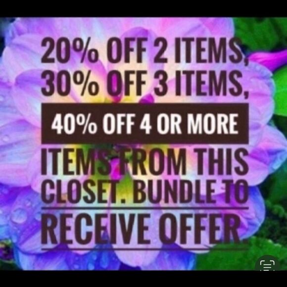 Bundle for 20% off 2 items, 30% off 3 items, 40% off 4 items. Applies to everything in my closet.