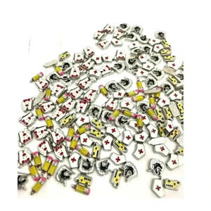 40 pc Mixed Enamel Metal Assorted Floating Charms Bulk Pencil Nursing School Bus