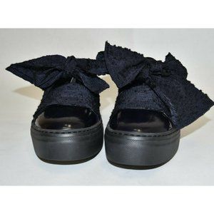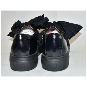 $400 AGL ATTILIO GIUSTI LEOMBRUNI Bow Platform Sneaker PATENT NAVY BLACK