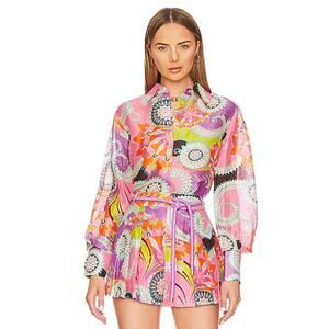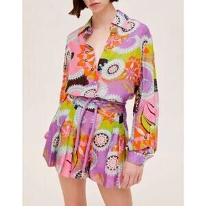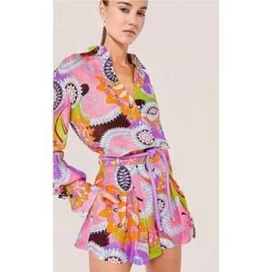 $400 Alexis Saine Multicolor Floral Long Sleeve Button-Up Drawstring Shirt Sz XS
