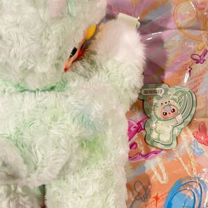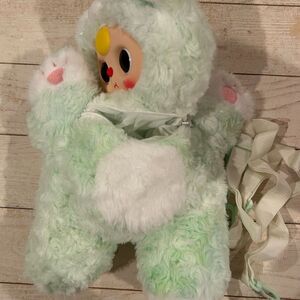 🚨Box is opened from the bottom, bag is open. Box, bag, card, and plush included. Straps are inside zipper pouch. Also comes with plastic covering although I had to rip it to open it.