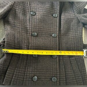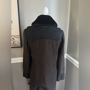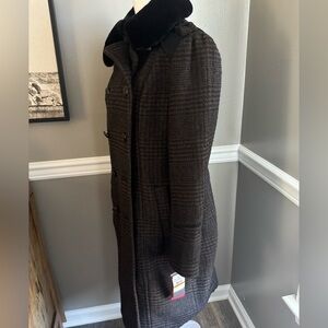$400 NWT VINCE CAMUTO brown black plaid faux fur collar Wool Coat Medium no belt