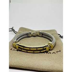 David Yurman 14K Yellow Gold Silver Diamond Metro Double Cable Bracelet