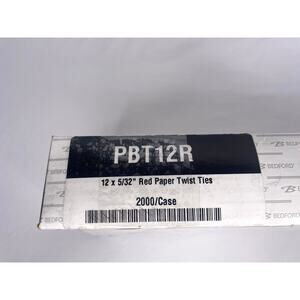 Bundle of 2 open boxes of BedFord 12" red paper twist ties—approx. 4,000 units total (less than 50 ties missing combined). Each tie has a sturdy single 27-gauge wire core, wrapped in durable red paper that doesn't flake or tear. Ties twist easily and stay securely in place. Perfect for sealing food bags, organizing cables, crafts, or attaching tags. Moisture-resistant, reusable, and usable outdoors up to 200°F. Boxes show cosmetic wear from storage; ties are unused and in excellent working condition.