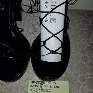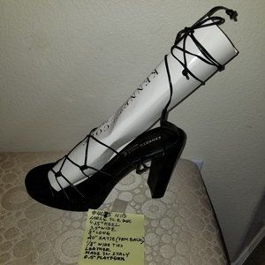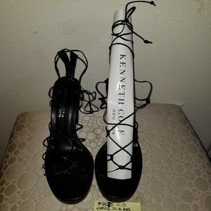 #4025 NIB Kenneth Cole Black ALL Leather Gladiator Stacked Heel Sandals 7.5M 4.25" heel,0.5 platform. $250 Retail. OBO!