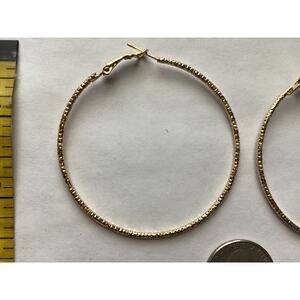 NWOP 2 1/4" Vintage Art Deco Style Gold Tone Round Etched Leverback Hoop Earrings