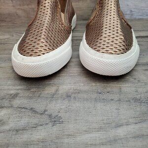 Sperry Seaside Perforated Platinum Metallic Gold Slip-On Sneaker Size 5 M 🎄