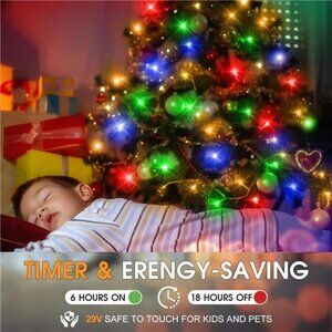 Safer and More Efficient: Christmas LED Lights is powered by 29V low voltage output Plug with UL certified, and Low-temp LED bulbs ensure no overheat after long time using. Very safety for kids and pets even can hold it or hang it on their bodies. The LED beads not only do they consume a fraction of the energy , but they also boast a longer lifespan, saving your both energy and money in the long run. It's a win-win situation that combines eco-friendliness with cost-effectiveness.