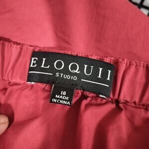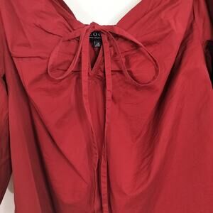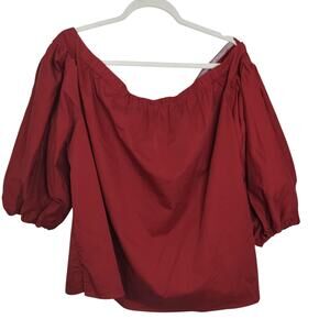 4081)Eloquii Studio Red Off Shoulders 3/4 Puff Sleeve Tie Neck Blouse Size 16