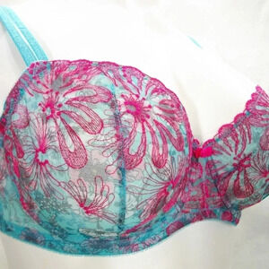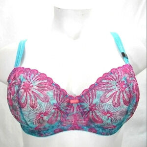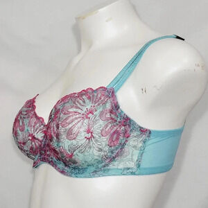 40D Paramour 115009 Ellie Demi Unlined Sheer Lace Bra Blue Botanical NWT