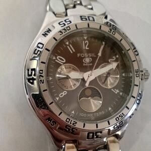 40mm Fossil BQ-8777 Blue Moonphase 1 Jewel Men's Quartz Wristwatch Japan Steel