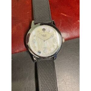 40mm Milano Expressions Quartz Watch, MOP Face, Black Poly Band, Silver tone Case
