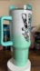 Stylish tumbler featuring a floral graphic design. Comes in mint green and white.