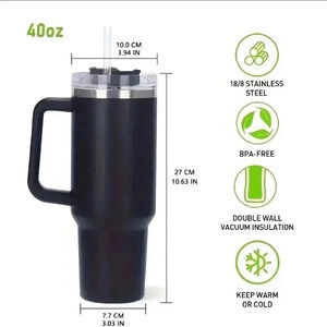 Say hello to your new hydration hero! This 40oz stainless steel travel mug is the ultimate companion for busy mornings, long commutes, and adventure-packed days. Designed for maximum convenience and performance, it features a durable handle for easy grip, a removable clear straw, and a twistable translucent lid with dual sipping options. Whether you're sipping hot coffee on your way to work or enjoying a cold smoothie at the beach, this tumbler keeps your drinks at the perfect temperature β hot for up to 12 hours and cold for 24!