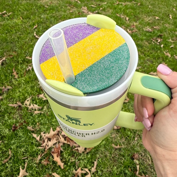 NWT 40oz Stanley with customized topper. You choose name (or text) and I will ship the cup and topper completed to you! I make the custom toppers myself!