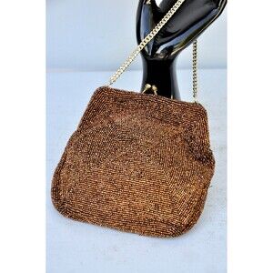 40s 50s BEADED Purse Clutch Small Hand Beaded Bag Mid Century Wedding Cocktail