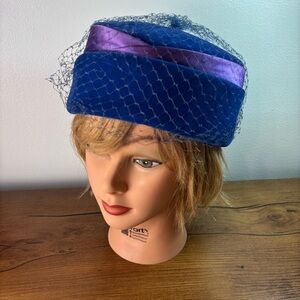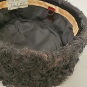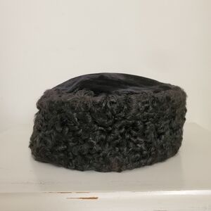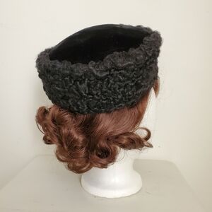 40s 50s Black Persian Lamb & Velvet Cossack Style Pillbox Tilt Hat