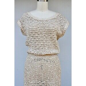 40s 50s Ivory Crochet Dress Marina California Saks Fifth Avenue See Through XXS