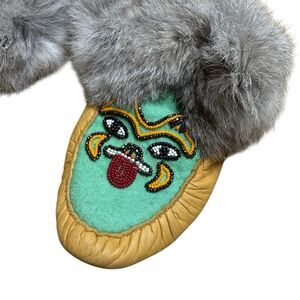 40s 50s vintage Tlingit Moccasins Native American Leather and Fur Hand Beaded