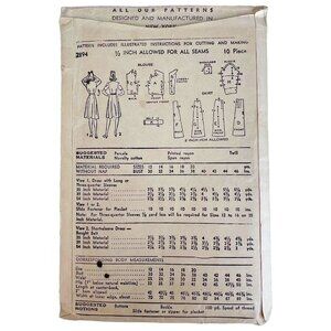 40s Advance Sewing Pattern 2894 Shirtwaist Dress Size 12 Bust 30" Bust Unprinted