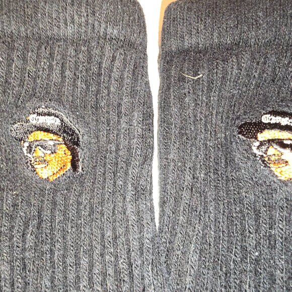 The 40s & Shorties Men's Easy E Black Socks in Large size are classic crew socks designed specifically for men. Made in a stylish black color, this pack includes one pair of high-quality socks perfect for everyday wear. With a comfortable crew length, these socks are great for completing any casual outfit in a sleek and versatile manner. Ideal for men looking for a durable and fashionable addition to their wardrobe. These socks are in good condition.