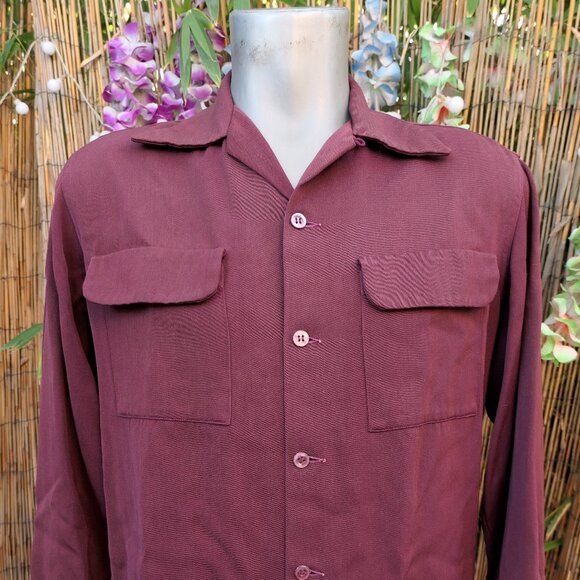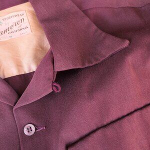 40's Vintage CAMERON Gabardine Loop Collar Flap Pockets L/S Shirt Medium