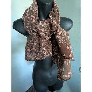 This is a women's chiffon scarf featuring a brown and pink floral pattern, designed in a rectangle shape measuring 40x40 inches. The scarf is meant to be worn around the neck as a shawl and exudes a Fairy and Coquette style. The multicolor design adds a whimsical touch, perfect for adding a bit of charm and elegance to any outfit.