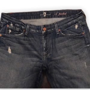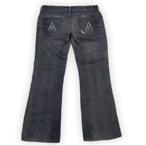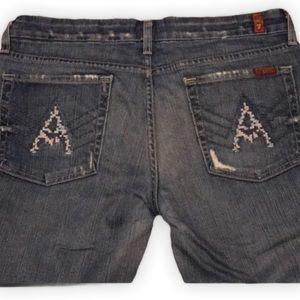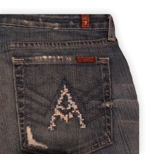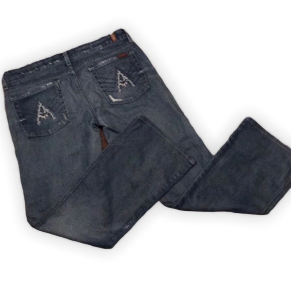 Blue bootcut A pocket jeans by 7 for All Mankind. 5 pocket, zip fly, embroidered "A" back pockets