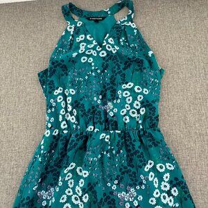 41 HAWTHORN Floral Dress Small Teal Sleeveless Elastic Waist Figure Flattering