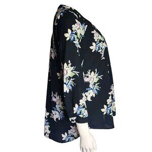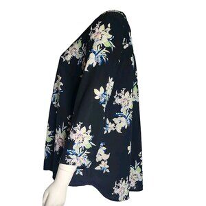 41 HAWTHORN Stitch Fix Black Floral 3/4 Sleeve Pullover Top Womens Size M Medium
