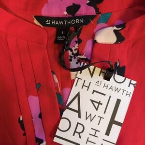 41 HAWTHORN Stitch Fix Red Floral Breyson Pleat Detail Blouse Women's Large