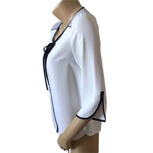 41 HAWTHORN Womens Size Small White Blue 3/4 Sleeve Keyhole Neck Blouse Shirt
