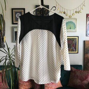 41 HAWTHORN size M Ivory & Black Polka Dot 3/4 Sleeve Popover Blouse Top