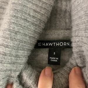 41 HAWTHORNE Sweater Porella Small Gray Cashmere Ribbed Turtle Neck High Low Hem