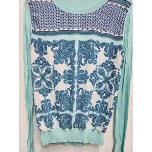 41 Hawthon Stitch Fix Womens Sweater Medium Light Blue Paisley Pullover Preppy