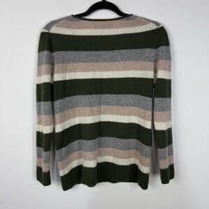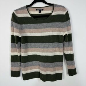 41 Hawthorn 100% Cashmere Green & Tan Striped Crewneck Sweater