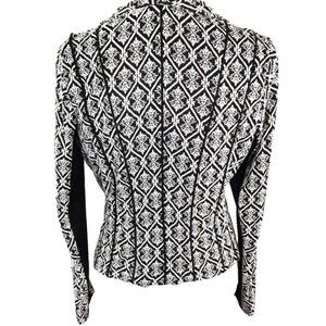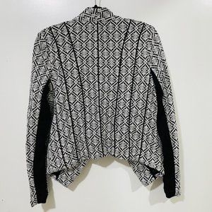 41 Hawthorn | Black White Geometric Stretch Open Front Cardigan Jacket